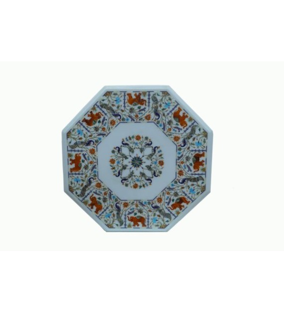 This Marble Inlay Table Top Orange Stone Octagonal Shape would be a perfect gift to your dear ones. It would enhance your dining experience or as a guest table or coffee table. This piece of art is wonderfully crafted in the city of Taj, where it is a legacy to shape the marble into an art piece. No, where there are such experienced hands that can create the magic over marble. The cutting and engraving are done very delicately and creatively. The stones are fitted or slipped into a floral or geometric design engraved on marble to make it a perfect artifact to decorate your home. One more good factor is that it is effortless to maintain. You need soap and water and a cotton cloth.